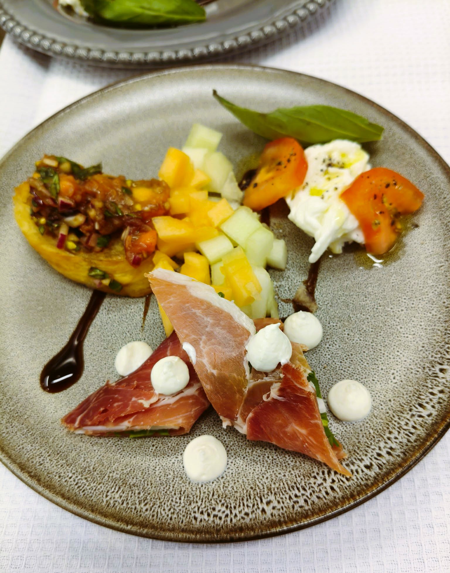 Minibruschetta, pepparrotsrulle med serranoskinka, caprese